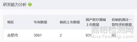 從研發(fā)能力看,截至2023年8月底,合肥市擁有生物醫(yī)藥產(chǎn)業(yè)領域?qū)@麛?shù)量3861個,新藥上市數(shù)量2個(創(chuàng)新藥、改良型新藥),國產(chǎn)醫(yī)療器械上市數(shù)量931個(以注冊證計),仿制藥通過一致性評價數(shù)量93(以受理號計)。