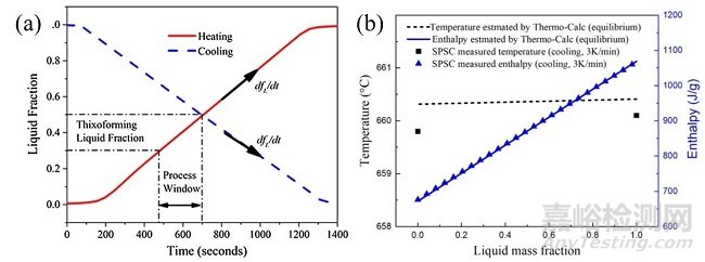 (a)液相分?jǐn)?shù)-時(shí)間曲線,(b)液相含量-焓變曲線