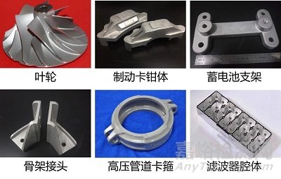 自2014年朱強(qiáng)團(tuán)隊(duì)在北京有色金屬研究總院建成國(guó)內(nèi)第一條高固相流變壓鑄成形生產(chǎn)示范線后,高固相流變壓鑄成形的產(chǎn)業(yè)化應(yīng)用進(jìn)程不斷加快。據(jù)不完全統(tǒng)計(jì),國(guó)內(nèi)建有高固相流變壓鑄成形生產(chǎn)線的企業(yè)已有近10家,分布在深圳、寧波、青島、徐州等地。產(chǎn)品包括:汽車渦輪增壓器葉輪,乘用車制動(dòng)卡鉗體、控制臂、發(fā)動(dòng)機(jī)支架、氣室支架,商用車后處理器支架、蓄電池支架,大巴車骨架接頭,特種車輛高壓管道卡箍,濾波器腔體等。