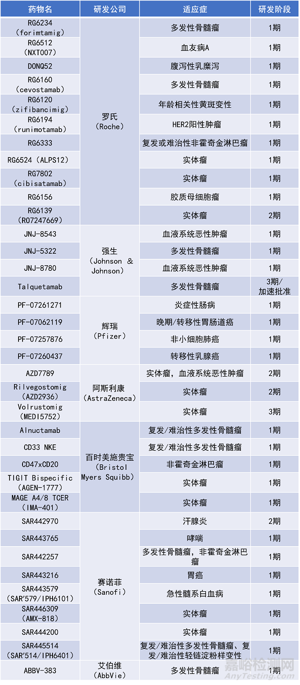 ▲2022年研發(fā)投入最多的十家藥企旗下的多特異性抗體療法(藥明康德內(nèi)容團隊制圖)