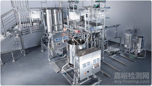用于集成4個(gè)一次性生物反應(yīng)器的不銹鋼平臺(tái)(反應(yīng)器的容量分別為50 l、500 l、2×2000 l)