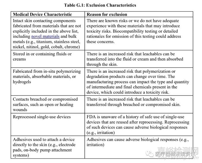 • 使用與完整皮膚接觸的普通材料制成的某些醫(yī)療器械的建議。附錄G列出的材料范圍包括: