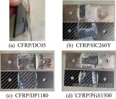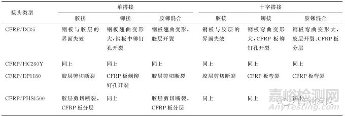 Tab.2 Failure modes of bonded, riveted,and glued riveted hybrid joints of CFRP/steel
