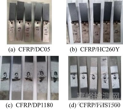 Fig.3 Failure morphology of single lap bonded joints under uniaxial tension