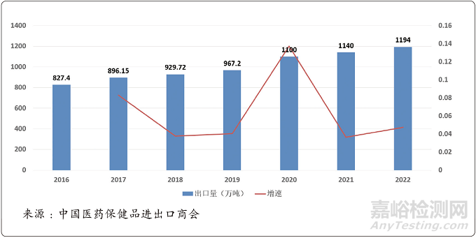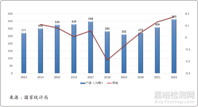 圖6 2013-2022年中國化學(xué)原料藥產(chǎn)能情況