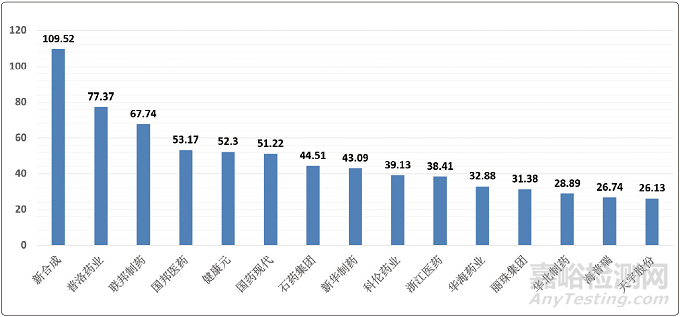 受一致性評價和國家集采制度的推進(jìn)、人口老齡化和社會發(fā)展以及更多原研藥專利到期帶來原料藥的需求增加、人才的不斷積累、技術(shù)水平的逐漸提高等諸多因素的影響,中國特色原料藥發(fā)展迅速。在中國原料藥TOP15企業(yè)中(如圖10所示),普洛藥業(yè)、華海藥業(yè)、海普瑞和天宇股份等公司在特色原料藥方面占據(jù)著重要的地位。另外,一些特色原料藥企業(yè)也逐漸脫穎而出,該類原料藥生產(chǎn)企業(yè)具有一定的稀缺性且對研發(fā)技術(shù)的要求較高,這方面的代表性企業(yè)有深耕高難度復(fù)雜原料藥品種的博瑞醫(yī)藥(產(chǎn)品有甲磺酸艾立布林、芬凈類等)、司太立(產(chǎn)品有造影劑系列原料藥)等。