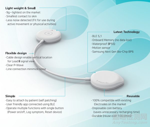 S-Patch Ex 是一款心電圖和心率記錄設(shè)備,供醫(yī)護(hù)人員和患者在家中和臨床環(huán)境中使用。該產(chǎn)品嵌入了三星電子的新一代生物處理器,可確保設(shè)備捕捉到準(zhǔn)確的心電圖波形。通過與服務(wù)和平臺提供商建立合作關(guān)系,該產(chǎn)品預(yù)計(jì)將于 9 月份在美國市場正式推出。