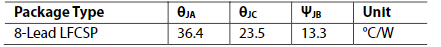 下面我們就用一個實際例子來計算一下。首先我們要知道產品最高的環(huán)境溫度,假如是+85°C,而我們一般認為常溫是25°C,那么產品的溫升即為60°C。那么溫升帶來的降額的功耗就是60°C除以熱阻系數36.4°C/W,結果就是1.65。其中熱阻系數由芯片手冊提供,這個參數跟不同的封裝也是不一樣的,要以手冊為準。下圖為芯片手冊關于熱阻系數的描述: