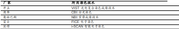 ▲ 主要電子染色技術(shù)對(duì)比 (資料來(lái)源:中國(guó)消化內(nèi)鏡雜志,各公司官網(wǎng)、安信證券研究中心)