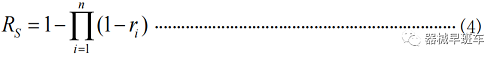 ri—系統(tǒng)各單元可靠度;n—單元個數(shù); RS —系統(tǒng)的可靠度。