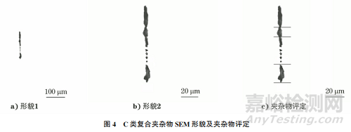 對于B類和C類復(fù)合夾雜物,根據(jù)夾雜物分布形態(tài),不考慮其化學(xué)成分,再根據(jù)長度或面積占優(yōu)原則確定夾雜物類別。