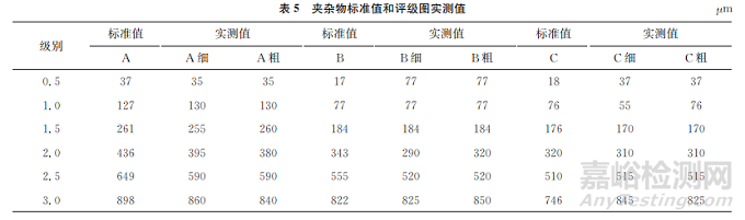 原標(biāo)準(zhǔn)中給出的夾雜物級別最高為3.0級,大于3.0的要通過計(jì)算得到其級別。隨著檢測設(shè)備的不斷更新,顯微鏡都配備了電腦,目前實(shí)際生產(chǎn)中大多采用測量夾雜物的長度來評定夾雜物級別的方法。為方便夾雜物的檢測,將夾雜物級別增加到5.0級。