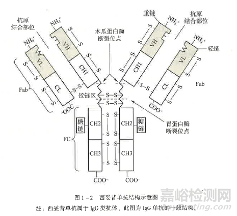 由于生物藥和小分子藥物本身結(jié)構(gòu)的不同,即使兩種藥物作用于同一靶點,二者對于疾病的作用機制也完全不同。下面以抑制腫瘤細胞上的表皮生長因子受體(epidermal growth factor receptor,EGFR)的藥物吉非替尼(gefitinib,Iressa,圖1-1) 和西妥單抗 (cetuximab,Erbitux,圖1-2)為例,比較生物藥和小分子藥物在作用機制上的差異。