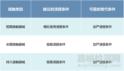 GB/T 16886.18-2022/ ISO 10993-18:2020中給出的浸提條件有極限浸提、加嚴(yán)浸提和模擬使用浸提,如下表: