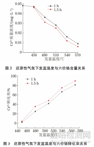2.3 發(fā)藍氣氛對六價鉻轉(zhuǎn)化率的影響