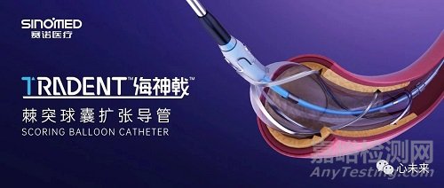 本次獲得《醫(yī)療器械注冊證》的冠狀動脈棘突球囊擴(kuò)張導(dǎo)管(TRADENT™海神戟™),是賽諾醫(yī)療公司自主研發(fā)并在國內(nèi)棘突球囊品類中率先獲批的一款產(chǎn)品,該產(chǎn)品在設(shè)計上兼顧了通過性、切割效果及安全性三大核心需求。
