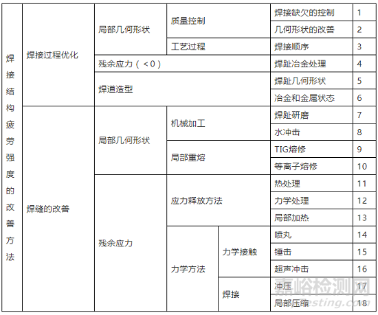 表1 焊接結(jié)構(gòu)疲勞強度的改善方法