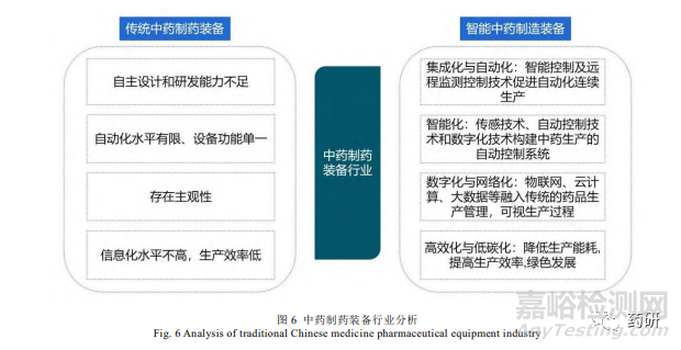 技術(shù)是發(fā)展的不竭動(dòng)力,現(xiàn)階段藥劑學(xué)的發(fā)展是在創(chuàng)新技術(shù)的基礎(chǔ)上發(fā)展起來的。中藥成分復(fù)雜,性質(zhì)不一,作用環(huán)節(jié)較多,需要根據(jù)中藥本身的特性等選擇最合理的制藥技術(shù),推動(dòng)中藥在臨床治療中的應(yīng)用,如目前用于臨床的中藥大多還是普通片劑,生物利用度有待提高,未來需要?jiǎng)?chuàng)新制劑技術(shù)升級(jí)工藝,從而提高制劑質(zhì)量。中藥制藥設(shè)備是中醫(yī)藥產(chǎn)業(yè)發(fā)展的重要環(huán)節(jié)之一,影響著中藥行業(yè)的發(fā)展,雖然現(xiàn)在我國(guó)中藥制藥裝備產(chǎn)業(yè)相比于以前得到了較大提升,實(shí)現(xiàn)了較快的發(fā)展,但是仍伍振峰等 數(shù)字中藥藥劑學(xué)的現(xiàn)狀與發(fā)展趨勢(shì)分析 11然存在一些不足:制藥效率低、成本高、智能化水平不高等等,應(yīng)繼續(xù)加強(qiáng)現(xiàn)代中藥制劑新工藝、新技術(shù)、設(shè)備的研究,開發(fā)出智能高效、節(jié)能降耗的設(shè)備與工藝,特別是質(zhì)量保障關(guān)鍵技術(shù)研究以及智能制造產(chǎn)業(yè)化[68],滿足臨床需要,促進(jìn)中藥藥劑學(xué)發(fā)展。