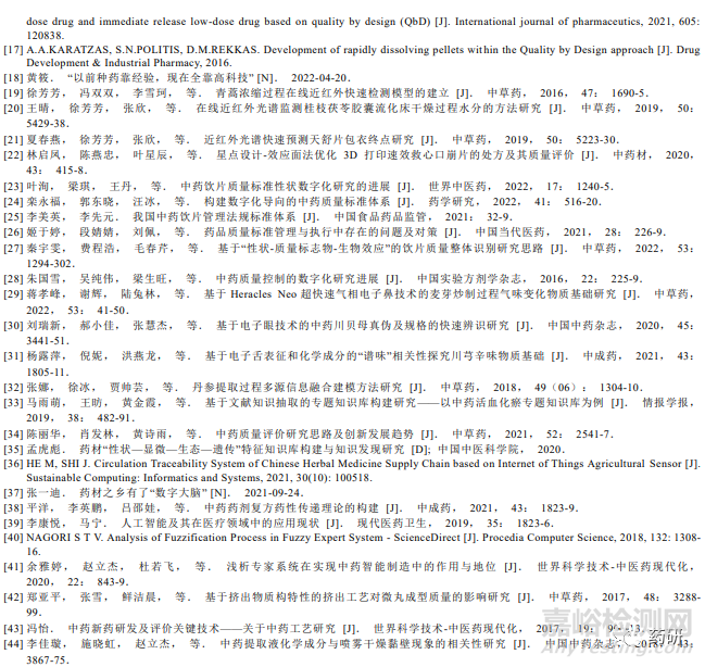 綜上所述,信息化手段對(duì)中藥藥劑學(xué)具有重要意義。首先,中藥藥劑學(xué)信息化可以在制藥過程中實(shí)時(shí)、同時(shí)處理大量數(shù)據(jù),實(shí)現(xiàn)制藥產(chǎn)業(yè)自動(dòng)化、智能化,實(shí)時(shí)控制中藥制劑動(dòng)態(tài)生產(chǎn)過程,建立穩(wěn)定可控的中藥綠色生態(tài)產(chǎn)業(yè)鏈,提高中藥制藥生產(chǎn)效率,解放勞動(dòng)生產(chǎn)力;其次現(xiàn)代科學(xué)技術(shù)為中藥6 中國(guó)中藥雜志制劑的質(zhì)量控制提供了更精確的評(píng)價(jià)標(biāo)準(zhǔn),能提升對(duì)中藥制劑質(zhì)量控制的能力和水平,以提高中藥制劑品質(zhì)和保障患者用藥安全。中藥是我國(guó)醫(yī)藥發(fā)展中的重要組成部分,堅(jiān)持守正創(chuàng)新,實(shí)現(xiàn)中藥藥劑學(xué)數(shù)字化,促進(jìn)我國(guó)中藥行業(yè)的現(xiàn)代化發(fā)展,推動(dòng)我國(guó)醫(yī)藥事業(yè)蓬勃發(fā)展,提升我國(guó)中藥的國(guó)際競(jìng)爭(zhēng)力。