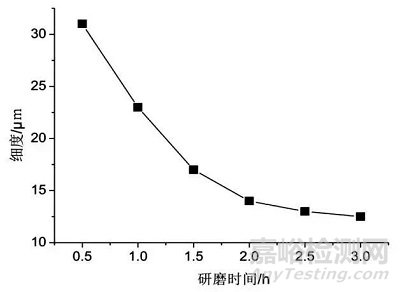 研磨時間影響色漿的最終分散效果,研磨時間不夠,樹脂無法充分潤濕分散顏填料;研磨時間過長,會增加生產成本。如圖3所示,研磨時間增加,色漿的細度逐漸下降,色漿也越穩(wěn)定,但研磨時間達到2.5 h以后,色漿細度達到15 μm以下,符合使用要求,且繼續(xù)延長研磨時間,色漿細度變化較小。因此,色漿適宜的研磨時間為2.5h左右。