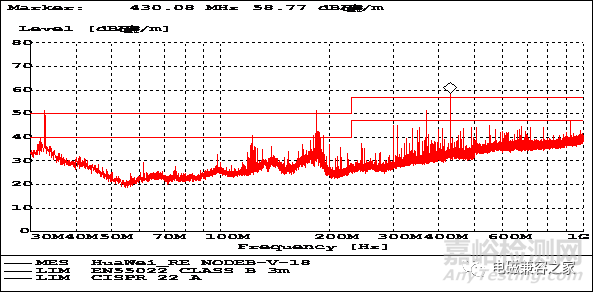 數(shù)通某產(chǎn)品在RE測(cè)試時(shí),165MHz不滿足Class A裕量要求,測(cè)試結(jié)果如下: