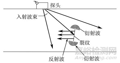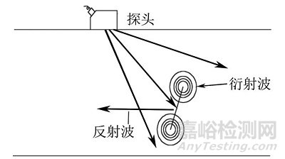 圖1 超聲波在缺陷處產(chǎn)生的反射和衍射示意