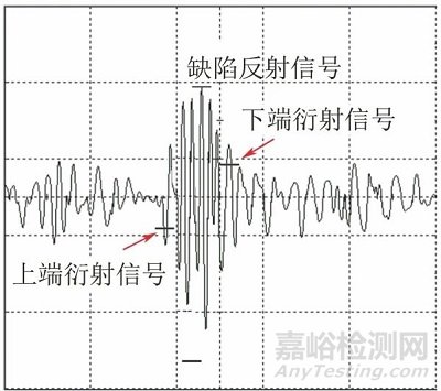 若缺陷高度方向與聲束垂直或近似垂直,則3種信號中的反射回波會很強,甚至有可能掩蓋缺陷下端衍射信號,但無論如何缺陷下端衍射信號都應該在信號末端出現(xiàn),此時可將末端信號視為缺陷下端衍射信號。