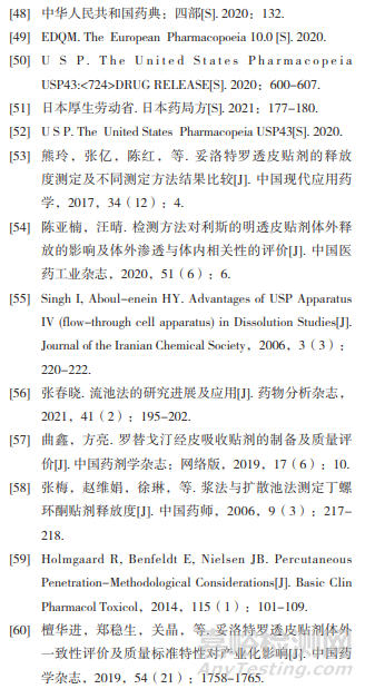 透皮貼劑以其給藥途徑簡(jiǎn)單,持久、恒定和可控的血藥濃度,患者依從性高等特點(diǎn)受到市場(chǎng)關(guān)注。在開(kāi)展貼劑質(zhì)量控制研究時(shí),除性狀、鑒別和含量等一般質(zhì)量檢測(cè)項(xiàng)外,還應(yīng)重點(diǎn)關(guān)注透皮貼劑的體外藥物釋放度、皮膚滲透性、黏附力、冷流和藥物殘留這些關(guān)鍵質(zhì)量屬性。但目前我國(guó)透皮貼劑質(zhì)量控制與評(píng)價(jià)還沒(méi)有形成系統(tǒng)化、統(tǒng)一化的研究和標(biāo)準(zhǔn),這也制約了國(guó)內(nèi)貼劑產(chǎn)品的研發(fā)。因此,需將新技術(shù)、新理念、新方法引入透皮貼劑質(zhì)量控制評(píng)價(jià)體系中,深入開(kāi)展基礎(chǔ)研究,進(jìn)一步制定科學(xué)完善的透皮貼劑相關(guān)標(biāo)準(zhǔn)。