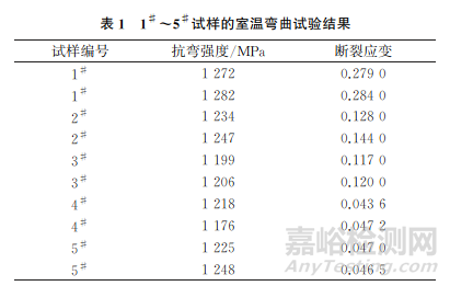 1#~5#試樣的室溫彎曲試驗結(jié)果如表1所示。