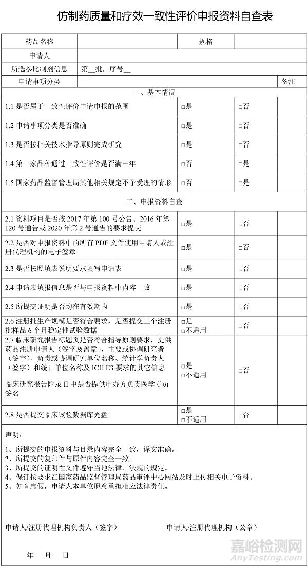 1.仿制藥質(zhì)量和療效一致性評(píng)價(jià)申報(bào)資料自查表