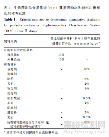 與BCS Ⅰ類藥物相比,BCS Ⅲ類藥物滲透性不高,且可能存在部位特異性的吸收,輔料可通過(guò)更多途徑影響其吸收。對(duì)于BCS Ⅲ類藥物,要求所有輔料應(yīng)種類相同且用量相似( 薄膜包衣或膠囊殼輔料除外)。