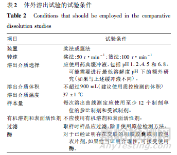 M9 指導(dǎo)原則要求,對(duì)于基于BCS 的生物等效性豁免,應(yīng)采用1 批能代表擬定商業(yè)生產(chǎn)過(guò)程的受試制劑與參比制劑進(jìn)行體外溶出曲線比較。通常受試制劑應(yīng)來(lái)自不少于商業(yè)生產(chǎn)規(guī)模1 /10 或100000 個(gè)制劑單位的批次,以較大者為準(zhǔn)。應(yīng)采用藥典裝置,使用表2 中的試驗(yàn)條件測(cè)定溶出曲線。