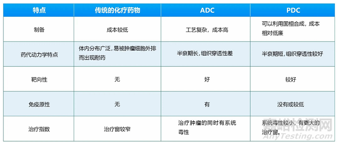 表2 PDC與傳統(tǒng)化療藥物和ADC的比較