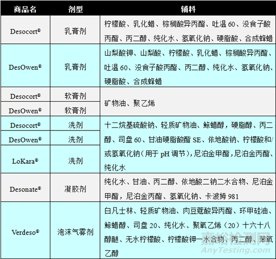 表1國(guó)外上市的地奈德制劑產(chǎn)品[3]
