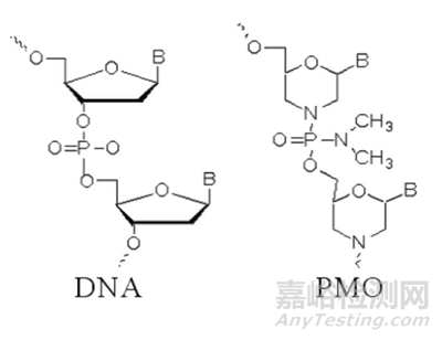 圖6. DNA(單鏈)與PMO化學(xué)結(jié)構(gòu)比較,圖片來源:Front. Microbiol.