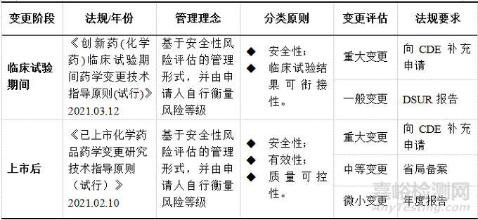 一、創(chuàng)新化藥臨床期間與上市后藥學變更管理對比