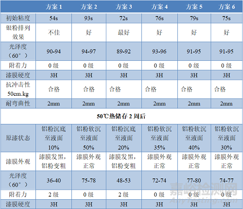 圖2 不同鋁粉定向劑的基礎(chǔ)漆熱儲2周后