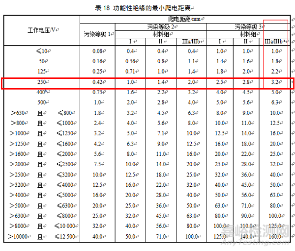29.2.4 功能性絕緣的爬電距離不應(yīng)小于表18的規(guī)定值。但如該功能性絕緣被短路時(shí)器具仍符合第19章要求,爬電距離可減小。