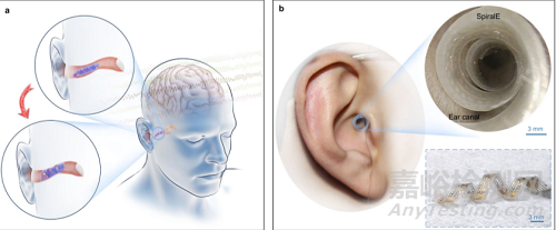 Spiral E 示意圖、耳內(nèi)植入方式、材料選型及機(jī)械結(jié)構(gòu)設(shè)計(jì)(圖片來(lái)自論文)