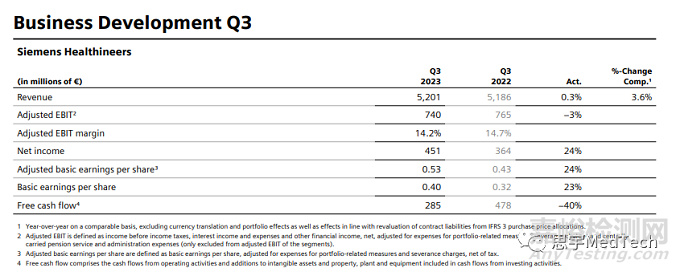 2023年8月3日,西門子醫(yī)療發(fā)布了2023年4月1日至2023年6月30日的2023財(cái)年第三季度季報(bào)。公司可比收入增長(zhǎng)非常強(qiáng)勁,不包括快速新冠肺炎抗原測(cè)試,為10.1%;包括快速抗原測(cè)試業(yè)務(wù),則收入在可比基礎(chǔ)上增長(zhǎng)了3.6%,達(dá)到了52億美元。凈利潤(rùn)增長(zhǎng)24%,達(dá)到4.51億歐元;