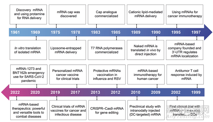 圖1. 基于mRNA治療的關(guān)鍵發(fā)現(xiàn)和進展