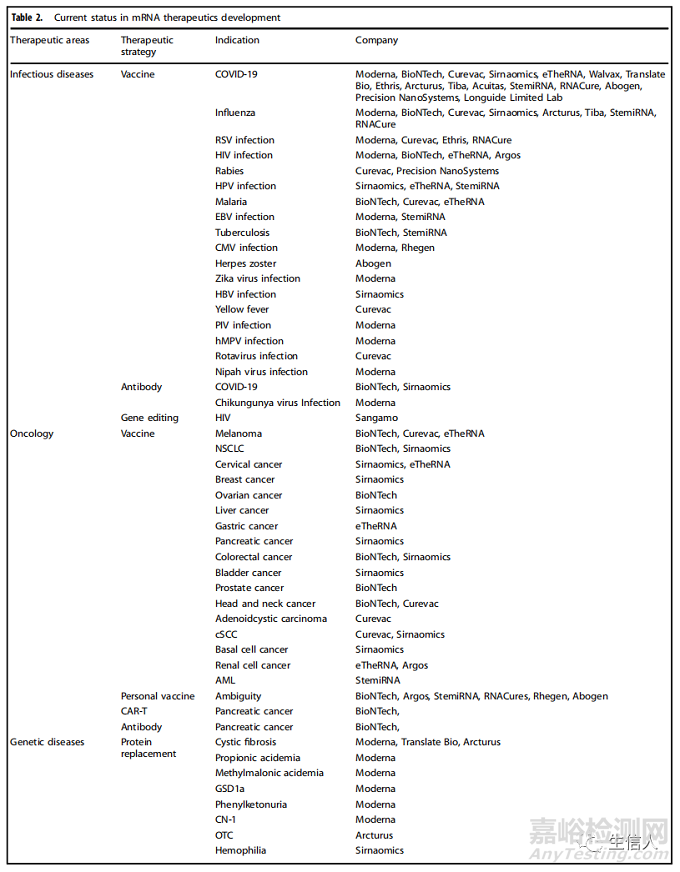表2. mRNA治療學(xué)的發(fā)展現(xiàn)狀