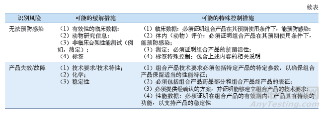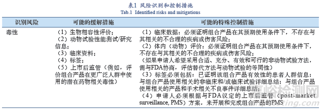 若該組合產(chǎn)品符合De Novo途徑申報(bào)的要求,F(xiàn)DA在其風(fēng)險(xiǎn)識(shí)別和緩解、控制措施部分主要關(guān)注的問題,如表1所示。