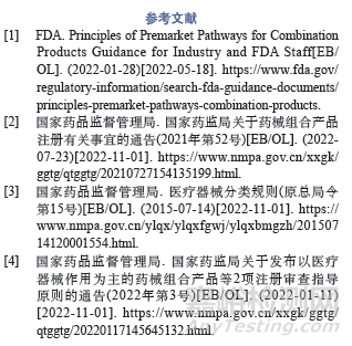 通過探討《組合產(chǎn)品上市前路徑指導(dǎo)原則》的相關(guān)要求,分析美國食品藥品管理局(Food and DrugAdministration, FDA)對含藥醫(yī)療器械5種典型情況的申報(bào)路徑、參比器械選擇的審評關(guān)注點(diǎn),以期對我國以醫(yī)療器械作用為主的藥械組合產(chǎn)品的申報(bào)注冊提供參考借鑒。