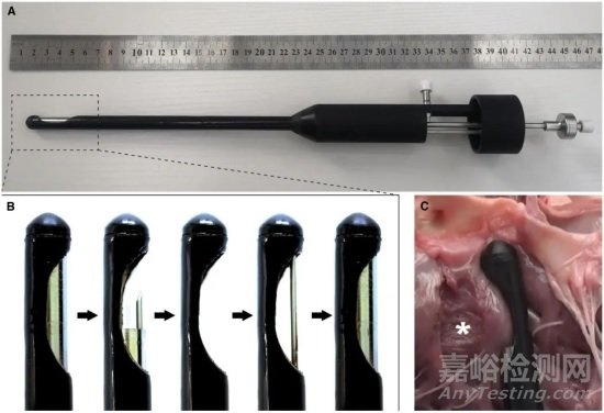 查閱相關(guān)文獻資料未發(fā)現(xiàn)類似手術(shù)方式和器械,魏翔教授團隊立即將該設(shè)計申請了發(fā)明專利,并在醫(yī)院和相關(guān)機構(gòu)的協(xié)助下,將該創(chuàng)意成功加工成真實的器械。此后,經(jīng)過數(shù)次工藝改進、技術(shù)攻關(guān)、離體豬心模擬及實驗豬體內(nèi)測試,并且不斷根據(jù)具體手術(shù)需求完善器械設(shè)計,歷經(jīng)3年研發(fā)7次原理樣機迭代后,形成了最終版定型樣機。