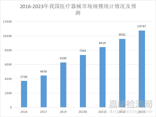 據(jù)前瞻產(chǎn)業(yè)研究院發(fā)布的《中國(guó)醫(yī)療器械行業(yè)市場(chǎng)需求預(yù)測(cè)與投資戰(zhàn)略規(guī)劃分析報(bào)告》統(tǒng)計(jì)數(shù)據(jù)顯示,2019年年我國(guó)醫(yī)療器械市場(chǎng)規(guī)模突破6000億元,未來(lái)5年(2019-2023年)均復(fù)合增長(zhǎng)率約為14.41%%,并預(yù)測(cè)在2023年我國(guó)醫(yī)療器械市場(chǎng)規(guī)模將突破萬(wàn)億元,達(dá)到了10767億元。
