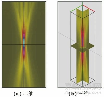 超聲陣列探頭的聲束合成性能直接影響超聲回波信號(hào)的幅值和信噪比。筆者采用CIVA軟件分析研究了超聲線陣、環(huán)形陣列探頭的三維聲場(chǎng)能量分布特點(diǎn)。