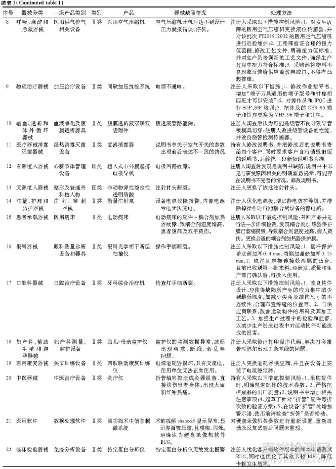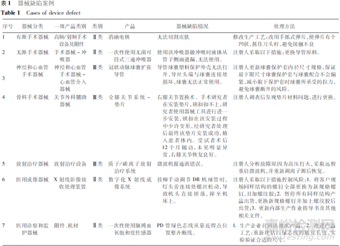 1.2 器械缺陷的分類