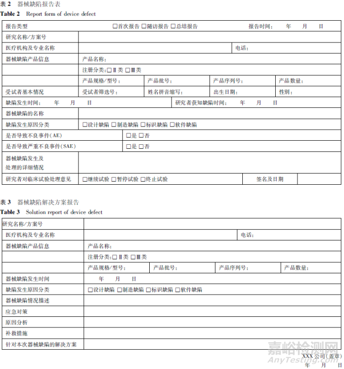 一旦獲知器械缺陷,研究者應為受試者提供足夠、及時的治療和處理,并做好記錄。建議各臨床試驗機構(gòu)建立醫(yī)療器械缺陷記錄及報告相關管理制度及標準操作規(guī)程。建議研究者在獲知器械缺陷后及時(如果導致嚴重不良事件應在24 h內(nèi))填寫《器械缺陷報告表》(詳見表2),并將器械缺陷事件報告給申辦者、醫(yī)療器械臨床試驗機構(gòu)管理部門、倫理委員會。建議申辦者收到《器械缺陷報告表》后應立即分析評估并填寫《器械缺陷解決方案報告》(詳見表3),報告給所有參加該臨床試驗的研究者、醫(yī)療器械臨床試驗機構(gòu)管理部門、倫理委員會。在未排除可能危及人體健康和生命安全的不合理風險前,應暫停使用該醫(yī)療器械。如果器械缺陷信息可能不完整或者不確定也應提交報告,當獲得更多信息時,可以隨訪報告的方式進行補充或修訂,應持續(xù)收集和記錄相關信息直到方案規(guī)定的報告期結(jié)束。