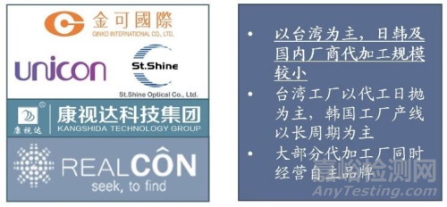 2)晶碩光學(xué):規(guī)模較小,代工業(yè)務(wù)為主,自有品牌晶碩營收占比約 22%;